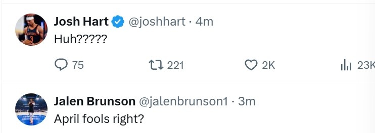 對此,尼克斯球星布倫森和哈特直接驚呆了。