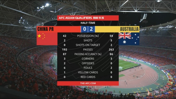 火熱的杭州球市并未給國足帶來好運,在事關(guān)18強賽走勢的最關(guān)鍵一戰(zhàn)中,國足上半場便0:2落后澳大利亞隊。在兩隊實力差距明顯的背景下,國足想在下半場后來居上,似乎沒有太多可能。