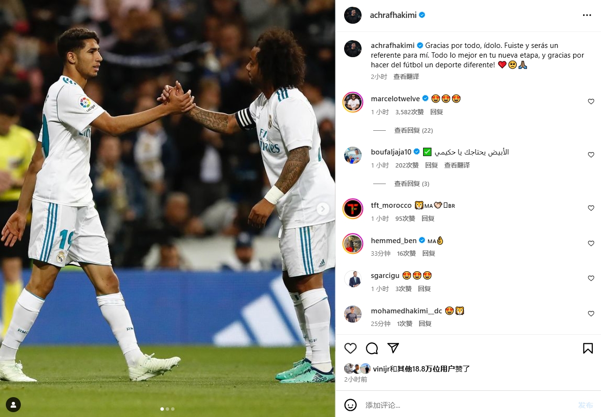 2月7日訊 皇馬傳奇左后衛(wèi)馬塞洛已經(jīng)官宣退役,曾在皇馬和他共事過的右后衛(wèi)阿什拉夫通過社媒送上祝福。阿什拉夫曬出自己和馬塞洛的同框照,并表示:“謝謝你所做的一切,偶像。你曾經(jīng)是、將來也仍然是我的榜樣。祝你在新的舞臺一切順利,感謝你讓足球變得截然不同。” 本文標(biāo)簽: 足球 法甲 巴黎圣日耳曼 西甲 皇家馬德里