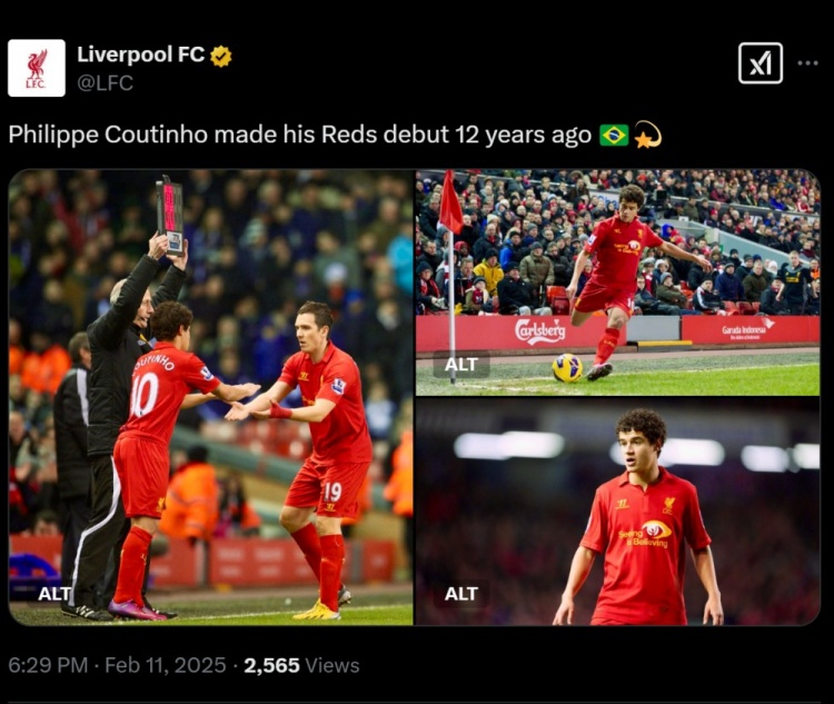 2月11日訊 12年前的今天,庫蒂尼奧迎來了自己紅軍生涯首秀,利物浦更新動(dòng)態(tài)表示紀(jì)念。